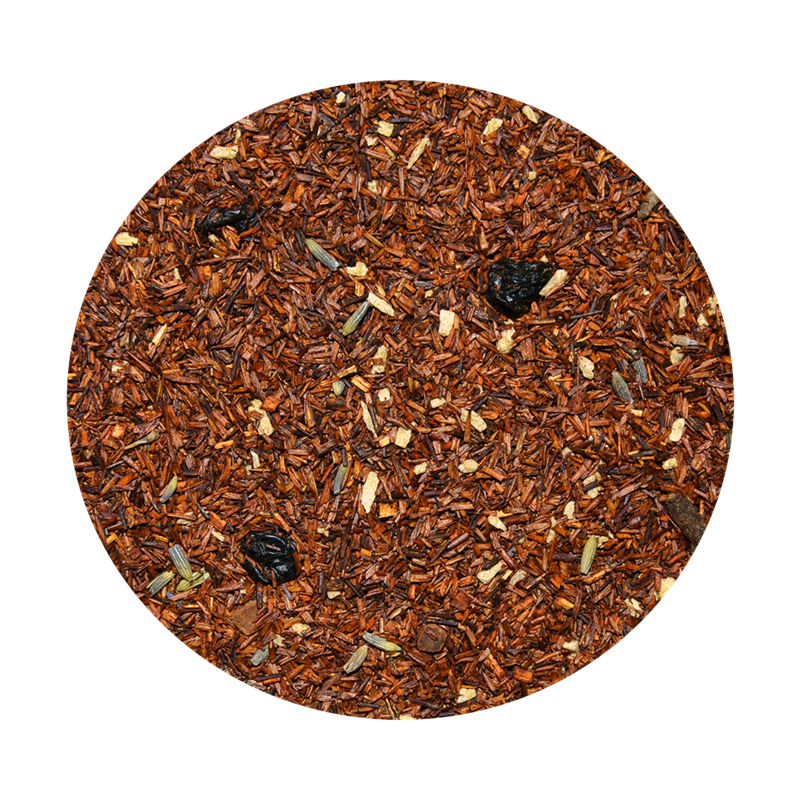 Ingredienser: Sydafrikansk rooibush te (73%), korender (11%) (korender, solsikkeolie), nelliker (5%), kokosstykker (5%), kanelstykker (2,5%), lavendelblomst (0,8%) og aroma.