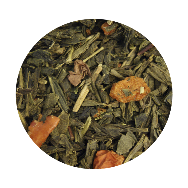 Ingredienser: Grøn Sencha te (84%), tørrede æblestykker (10%), frysetørrede kvædestykker (3%) og aroma.