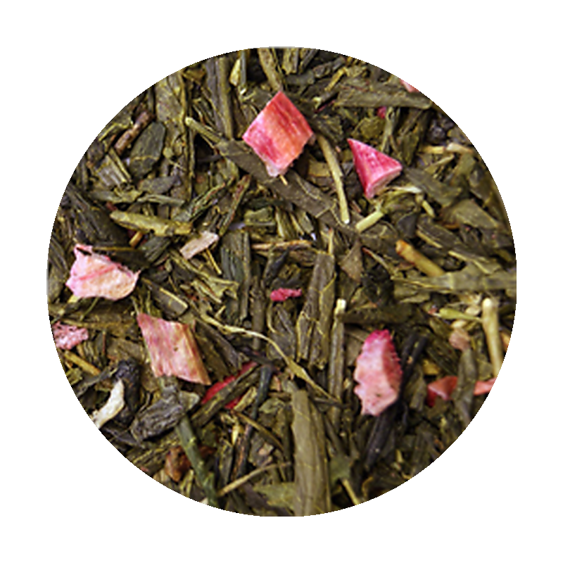 Grøn te med mild og cremet smag af rabarber. En sødmefuld te.