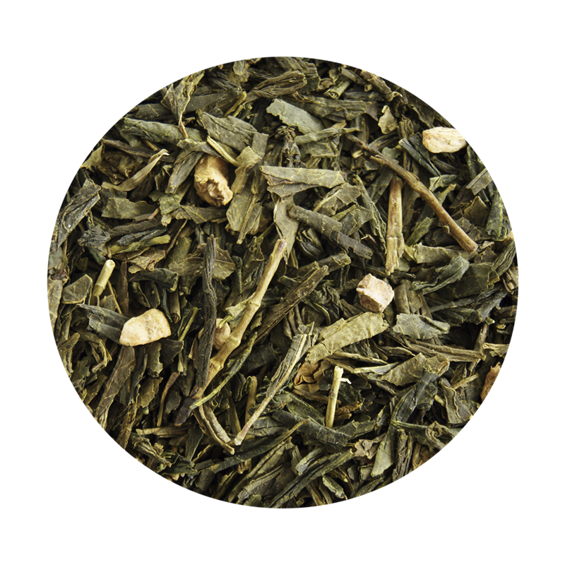 Ingredienser: Grøn Sencha te (90%), ingefærstykker (8%) og naturlig aroma.