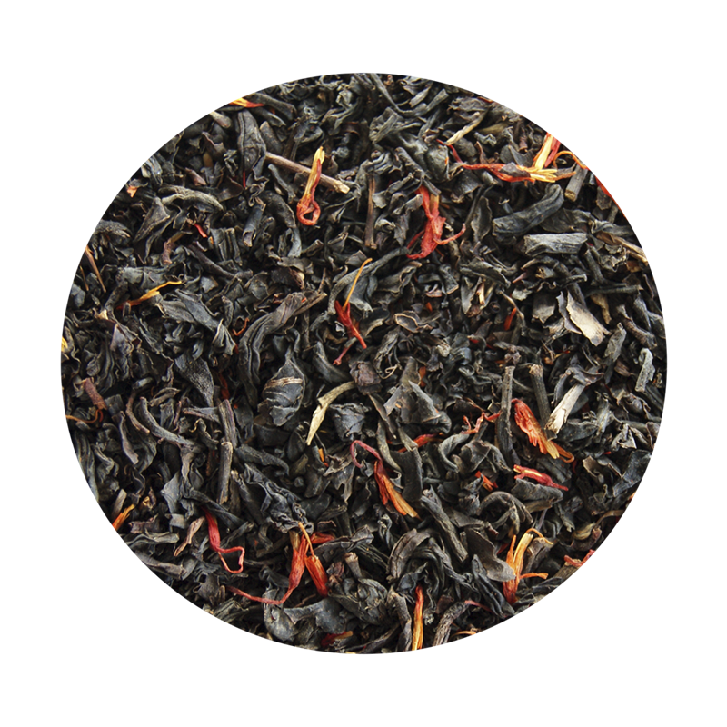 Ingredienser: Sort te (97%), saflorblomster (2%), frysetørrede kirsebærstykker (1%) og aroma