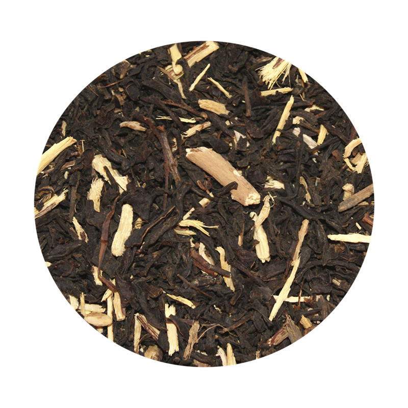 Ingredienser: Sort te (83%), skåret lakridsrod (17%) og naturlig aroma.