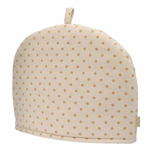 Giv din tekande et hyggeligt og stilfuldt look med denne charmerende tehætte med fine lysebrune prikker på en varm sandfarvet bund. Den passer til de fleste almindelige tekander og er både praktisk og dekorativ.
