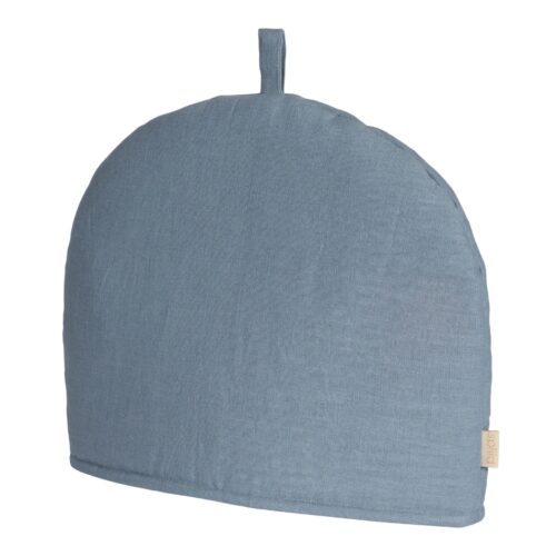 Forkæl din tekande med denne smukke tehætte i vasket hør i en elegant støvet blå farve. Den naturlige struktur og bløde kvalitet gør hætten både dekorativ og hyggelig på bordet.