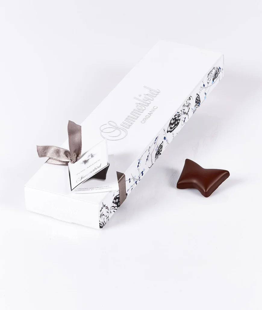 Vores ikoniske sommerfugl, Pure Amande blev skabt i 1986. Vores Summerbird blev et nybrud i chokoladeverdenen og starten på Summerbird Organic. Filosofien var dengang som nu at skabe den fuldendte chokolade, baseret på de bedste ingredienser fra naturen. Opskriften på Summerbirden er enkel: ren marcipan af stenvalsede middelhavsmandler, overtrukket med vores mørke chokolade Amazonas 61 %. En perfekt kombination, hvor mandelsmagen og de fine florale noter i den saftige marcipan fremhæves af den frugtige mørke chokolade.