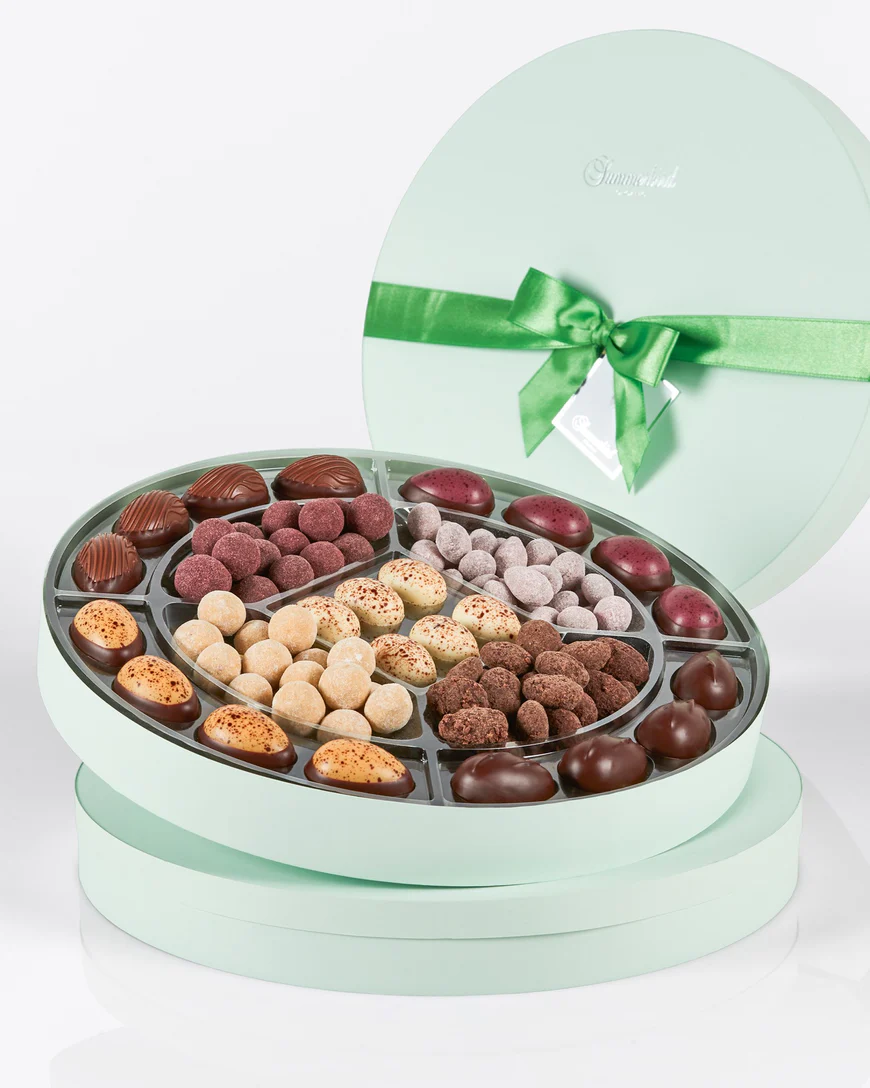 Smuk og elegant gaveæske, fyldt med en mangfoldighed af vores unikke påskespecialiteter.